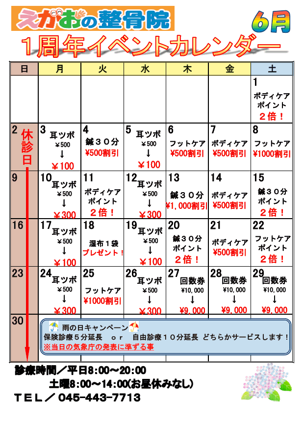 お陰様で、6月にえがおの整骨院は開院1周年を迎えます。