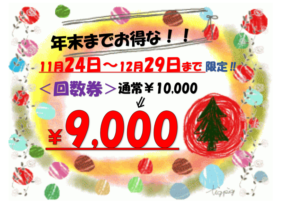 年末までの限定にて回数券を9000円にて販売致します!!